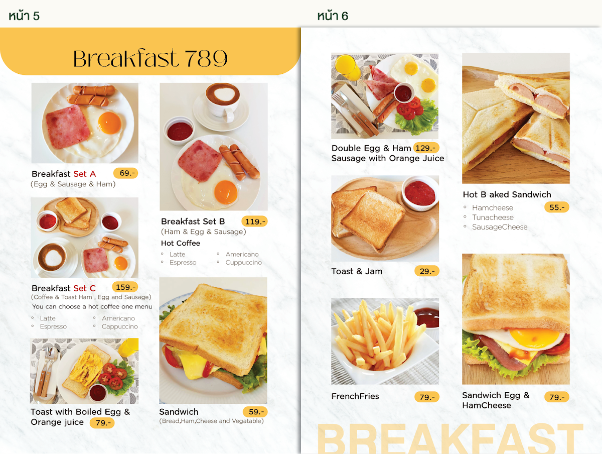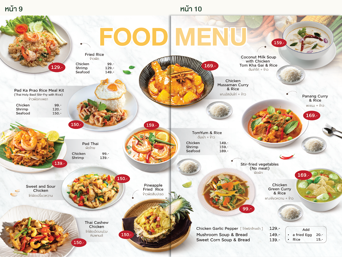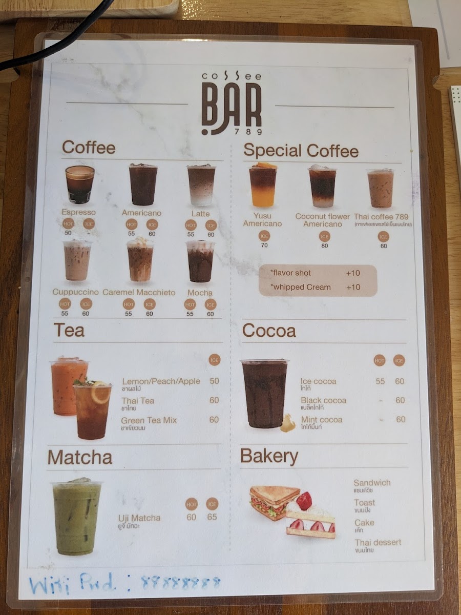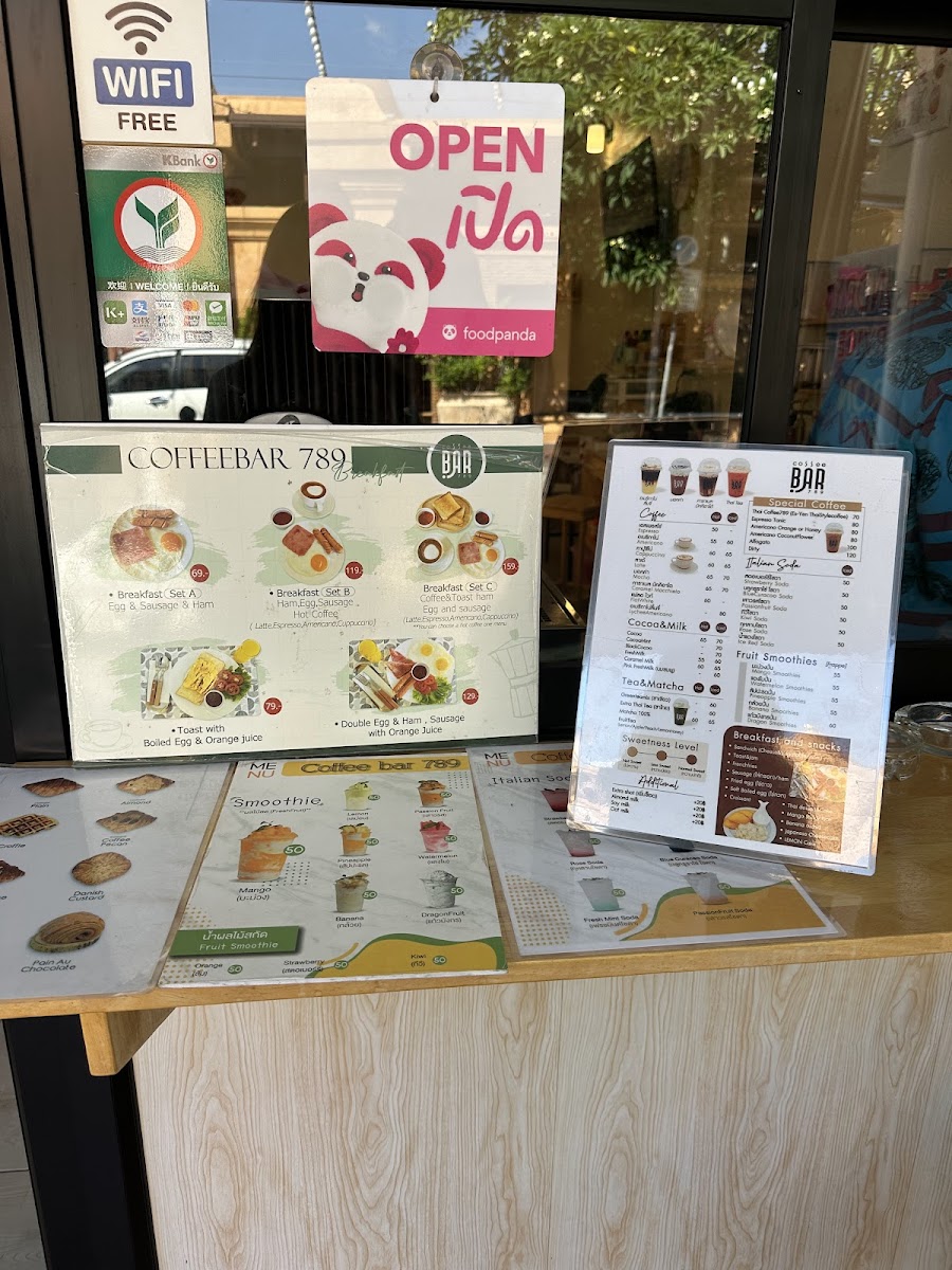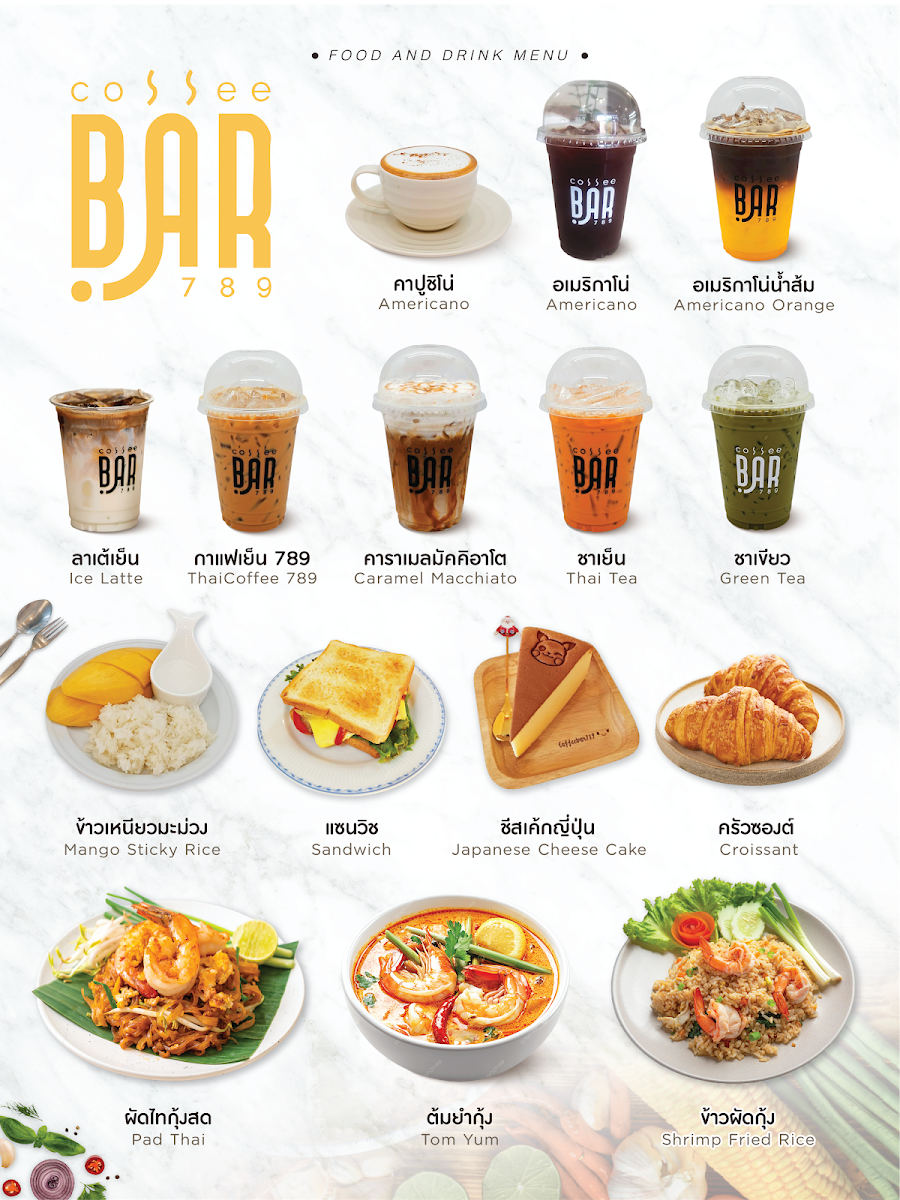 In addition to beverages, the menu features simple food items like coffee paired with toast and homecooked Thai meals. Desserts include selections such as Japanese cheesecake and traditional Thai sweets. The menu is structured to accommodate quick orders as well as relaxed visits for light meals.